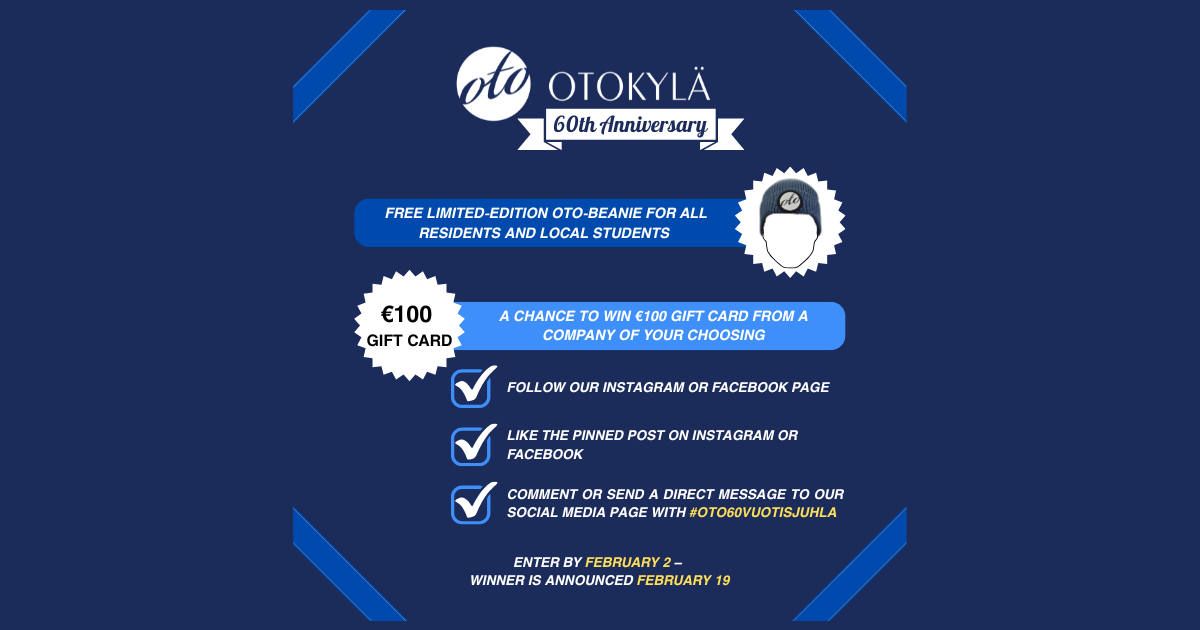 2026 marks a milestone for Otokylä! Since 1966, we have proudly worked to provide affordable student housing, 60 years and counting! To celebrate this anniversary, we’ve prepared something special for our residents and local students. Read on to find out!